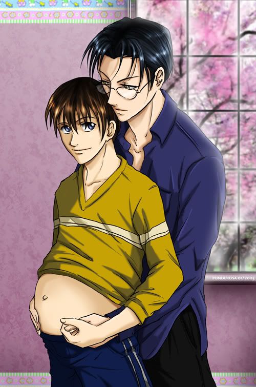 Хе-хе, у Пондерозы есть еще практически такая же по... эээ... композиции картинка, где Брэд Кроуфорд с Кеном Хидакой... К счастью, беременным был не Кроуфорд